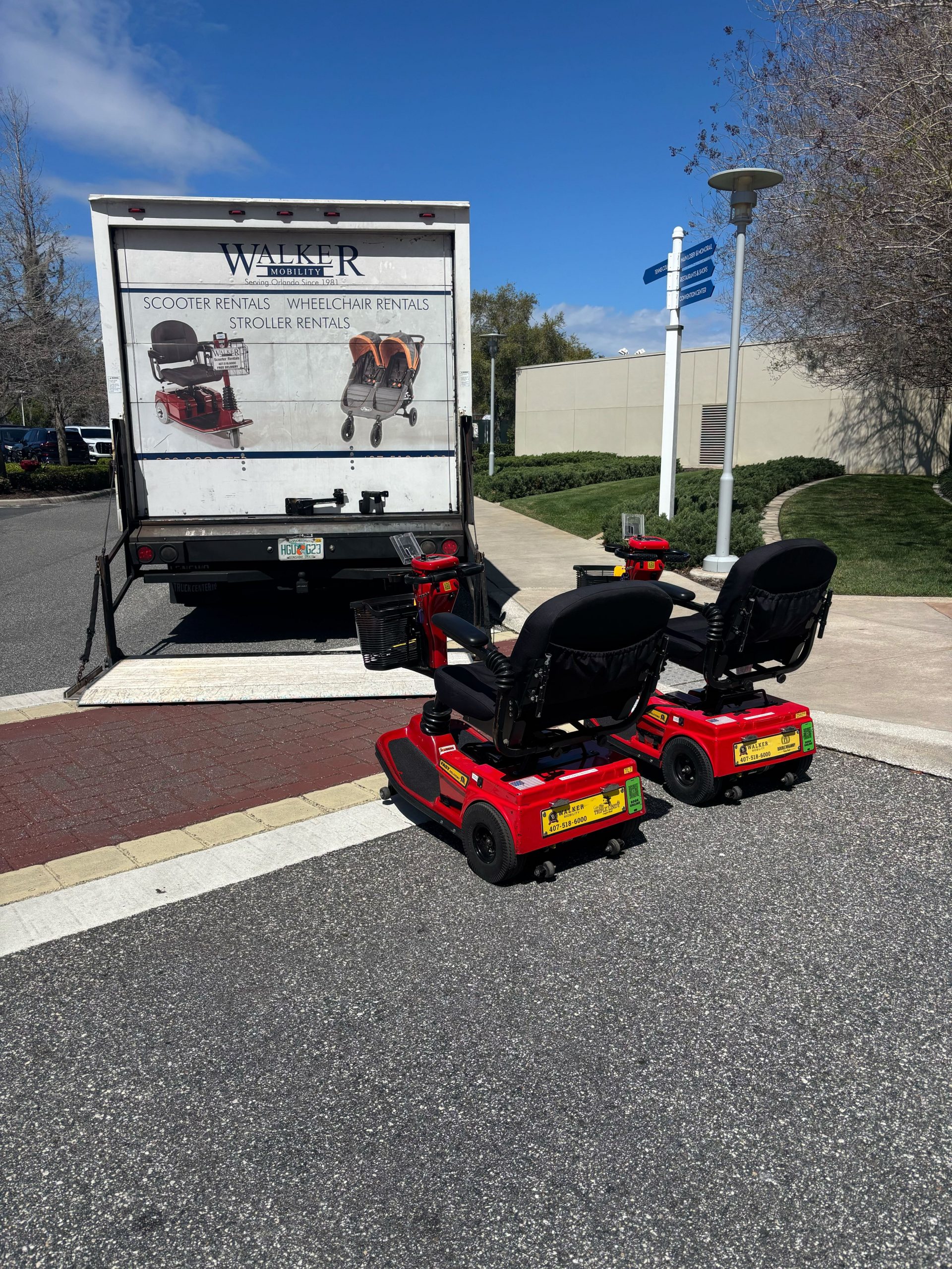 Once again, Walker Mobility provided great service. This trip we rented a house instead of staying at a hotel, so I was a little concerned about the delivery and pick up, but when we arrived at our rented house (in a gated community) the scooter was waiting for us. I got the extended range scooter, and really put it to the test. We went to three parks in one day, in the pouring rain, and the scooter didn’t let us down. Walker Mobility is simply the best.